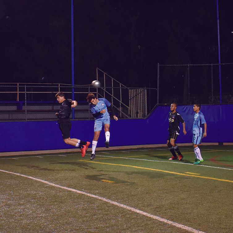 Contamos con tres canchas de Fútbol 7 de pasto sintético y una de soccer con pasto natural, gradas e iluminación tipo estadio, nuestras 3 canchas también son habilitadas para jugar tochito bandera, nos encontramos ubicados dentro de La Salle Simón Bolívar.